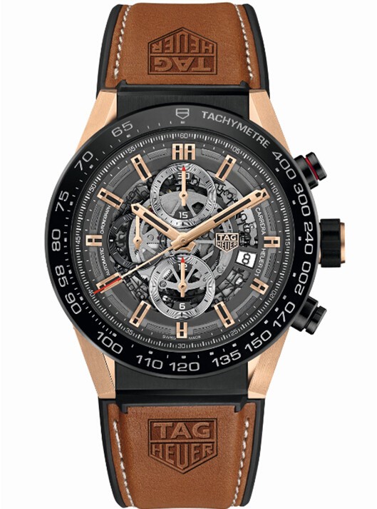 This all-new homemade chronograph features all the first generation Heuer-01 watches, including an open dial that has become a symbol of the Carrera collection, a 45-mm case constructed of titanium and a bezel with a speed-calibrated scale . Watch lugs, hands and time scales are 18K rose gold to build, adding extravagance and demeanor for the watch. The matching full-grain calf leather strap imprinted with the Tag Heuer logo makes the watch stylish and sporty.